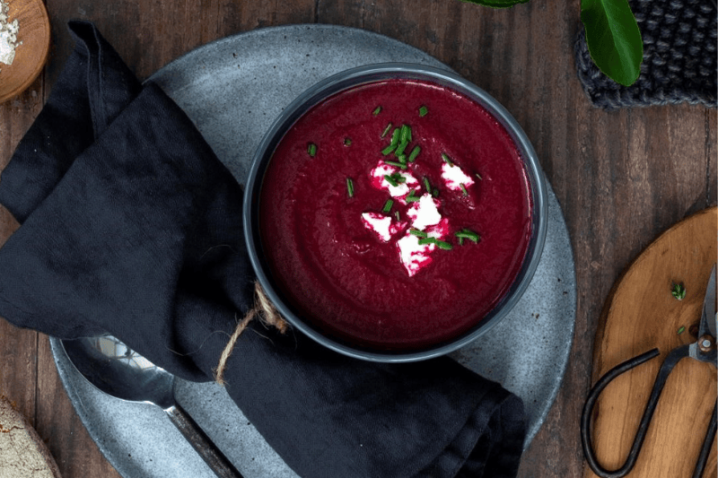 Balsamic beetroot and goats cheese soup