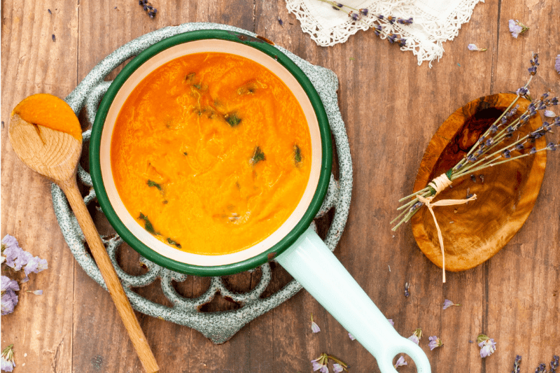 Carrot, kale and red lentil soup