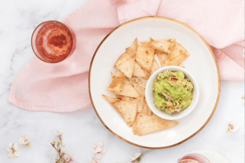 Homemade tortilla chips with guacamole
