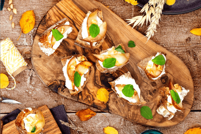 Pear and goats cheese crostini