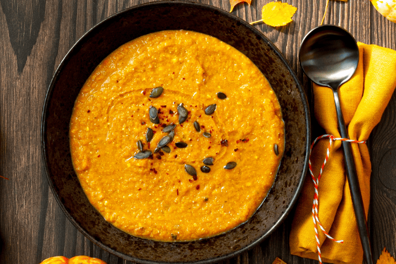 Spicy pumpkin soup with tortilla chips